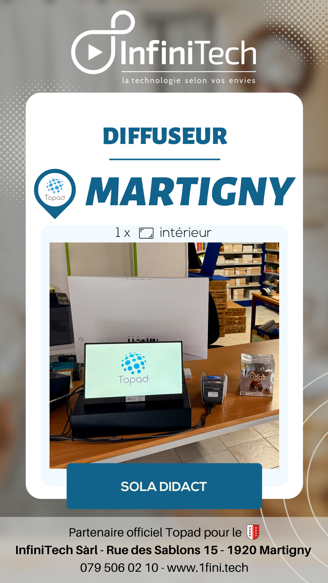 Chez InfiniTech, on installe, connecte et accompagne les entreprises valaisannes grâce à une technologie de diffusion simple et puissante: Topad