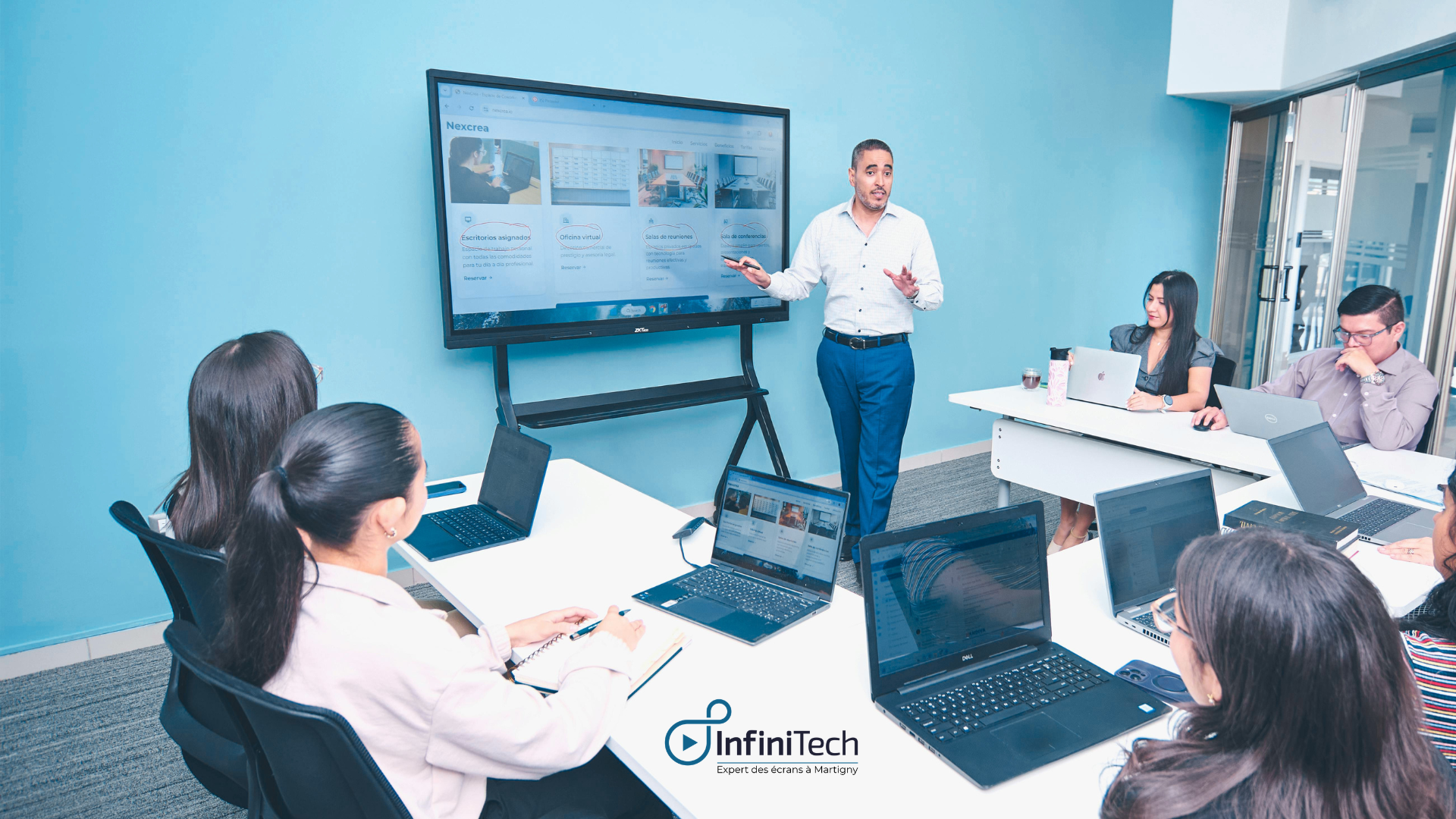 Basée à Martigny, InfiniTech Sàrl accompagne les entreprises valaisannes dans la création de salles de réunion connectées, simples à utiliser, fiables et parfaitement adaptées à la visioconférence (Teams, Zoom, Google Meet).